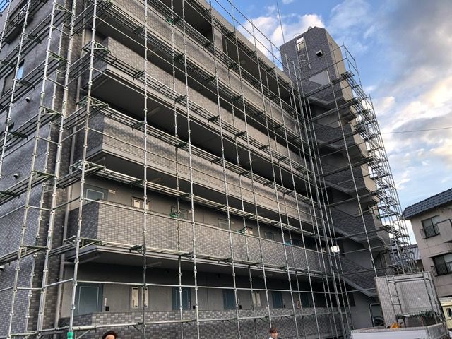 職人の皆様がより作業を効率的に行えるよう仮設足場を組立てます。